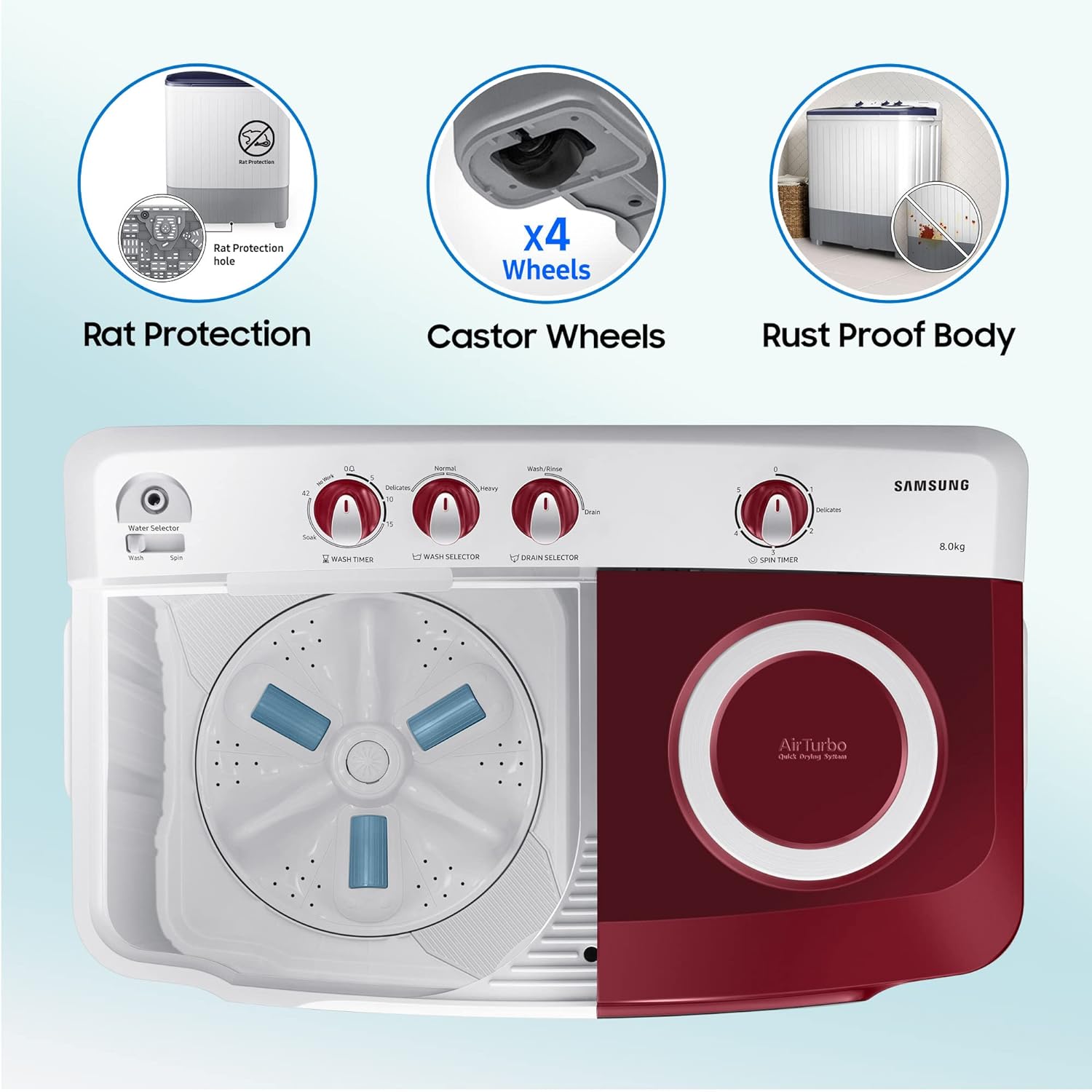 Samsung 8.0 Kg Semi-Automatic 5 Star Top Loading Washing Machine