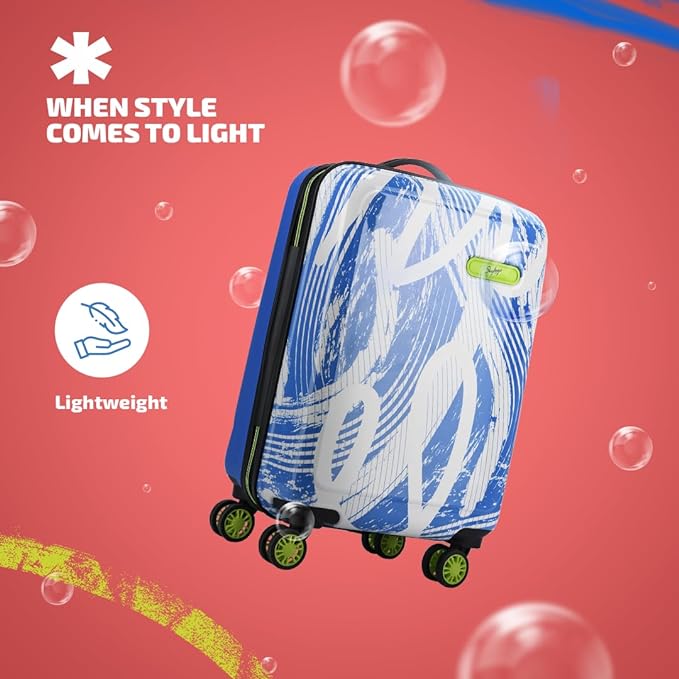 Skybags Stroke Cabin ABS Hard Luggage (55 cm) | Printed Luggage Trolley with 8 Wheels and in-Built Combination Lock | Unisex, Blue and White