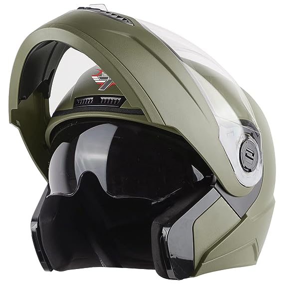 Steelbird SBA-7 7Wings ISI Certified Flip-Up Helmet for Men and Women with Inner Smoke Sun Shield (X-Large 620 MM, Dashing Battle Green)