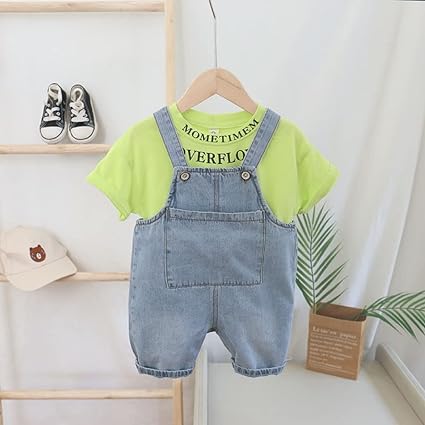 Stylishbaby Boys Half Sleeves Printed T-Shirt and Denim Dungaree Set (3-4 Years, Green)