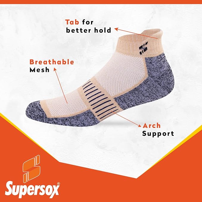 Supersox Ankle Socks for Men & Women (Unisex) Made With Durable, Breathable Cotton, Ideal for Casual Wear, Running, Sports – Pack of 3, Free Size