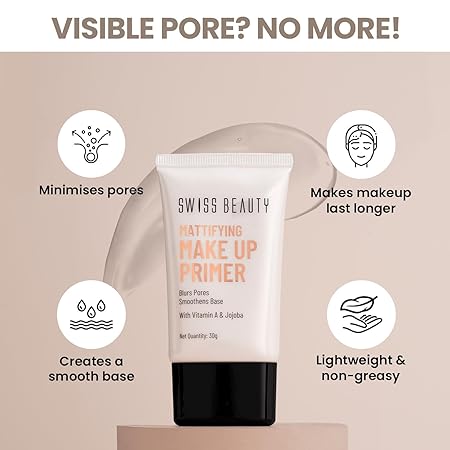 Swiss Beauty Mattifying Makeup Primer | Oil-Free Shine | Minimises Pores | Long-Lasting Base | All skin Types, 30gm
