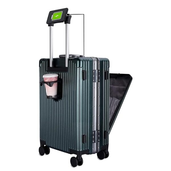 THE CLOWNFISH Ambassador Series Carry-On Luggage Polycarbonate Hard Case Suitcase Eight Spinner Wheel Trolley Bag with TSA Lock, USB, Mobile Holder, Cup Holder- Forest Green (56 cm-22 inch)