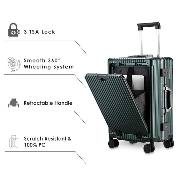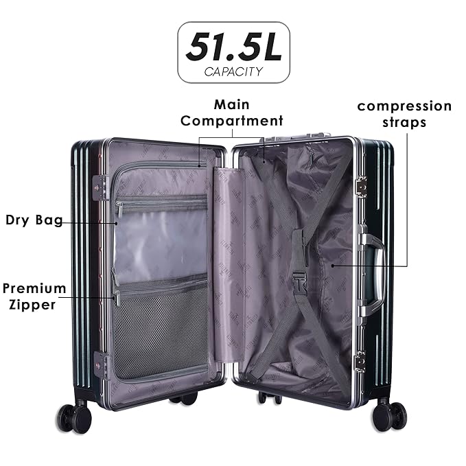 ➧ SIZE & TSA LOCK SECURITY: Size: 37 cm (L), 24 cm (W), 56 cm(H)(with wheels). Capacity: 51.5 litres. Weight: 4.04 Kg. This bag is zipless. The suitcase comes with Dual TSA Approved Combination Locks to ensure your belongings safe and secure. The clasps are solid with a number coded lock. Provided with spacious compartments with multiple pockets to keep all your clothes & accessories organized. Comes with padded Laptop sleeve for 14 inch laptops, organizer pockets & document sleeve.