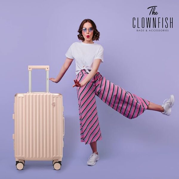 THE CLOWNFISH Stark Series Luggage Polycarbonate Hard Case Suitcase Eight Wheel Trolley Bag with Double TSA Locks- Blush Pink (Small Size, 57 cm-22 inch)