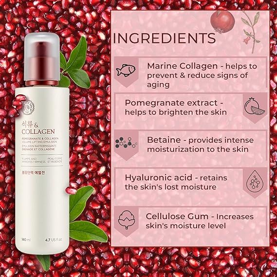 The Face Shop Pomegranate & Collagen Face Cream With 10% Marine Collagen| Day & Night Cream to Smooth Wrinkles| For Anti-Aging, Skin Firming & Plumping Skin 140ML