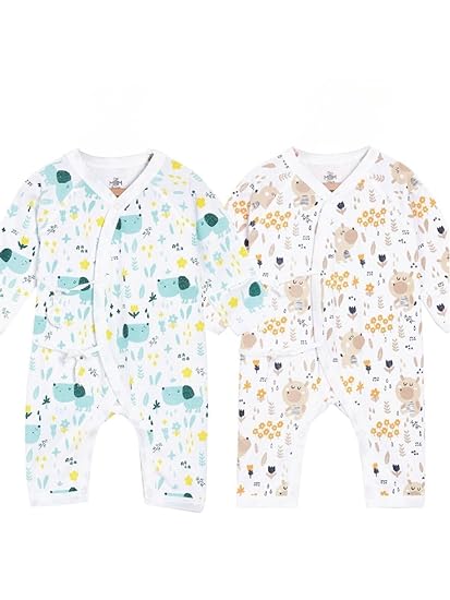 The Mom Store Infant/Baby Jhabla Rompers Combo of 2 | Jabla Style | 100% Cotton | For Baby Girls and Baby Boys | Snap Buttons | Comfortable