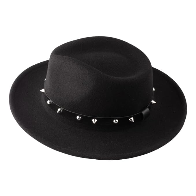 The Tie Hub Punk Rock Black Flat Fedora Hat for Men