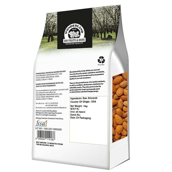 Wonderland Foods Premium Raw California Almonds 1Kg Pouch Pack | Badam Giri | Nutritious & Delicious High in Fiber & Boost Immunity | Dry Fruits Real Nuts | Gluten Free