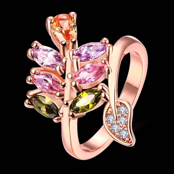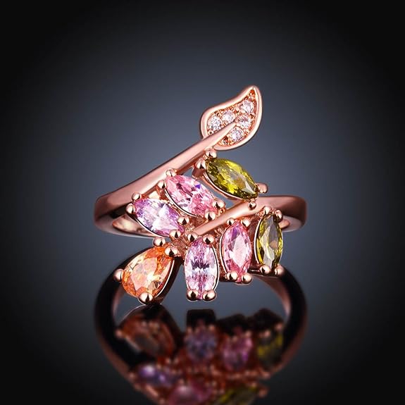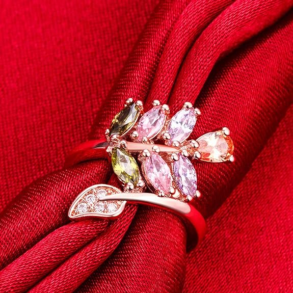 • BEAUTY- A timeless essential for your jewelry box!Feminine and Elegant,a must-have Multicolor Swiss High Grade Zircon Ring in Vibrant colors will complement any look. Its stunning sparks of Colors centerplaced is fully integrated into the rose gold-plated shank to create a rainbow of crystal colors . Simplicity at its best.