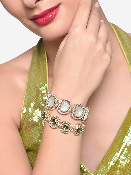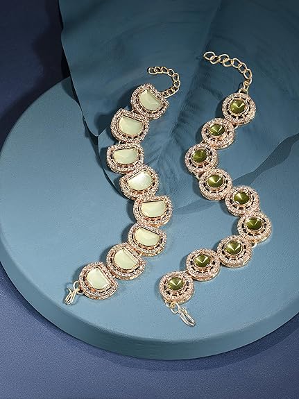 Features: Bracelets Are An Easy Way Of Amping Up Your Outfit. This Ethnic Bracelet Design Is Very Fashionable, Subtle And Trending Which Is Embellished With Dazzling Stones. Most Often To Be Worn At weddings Or Festives, This Bracelet Can Be Paired With Ethnic outfits In Rich Colours.